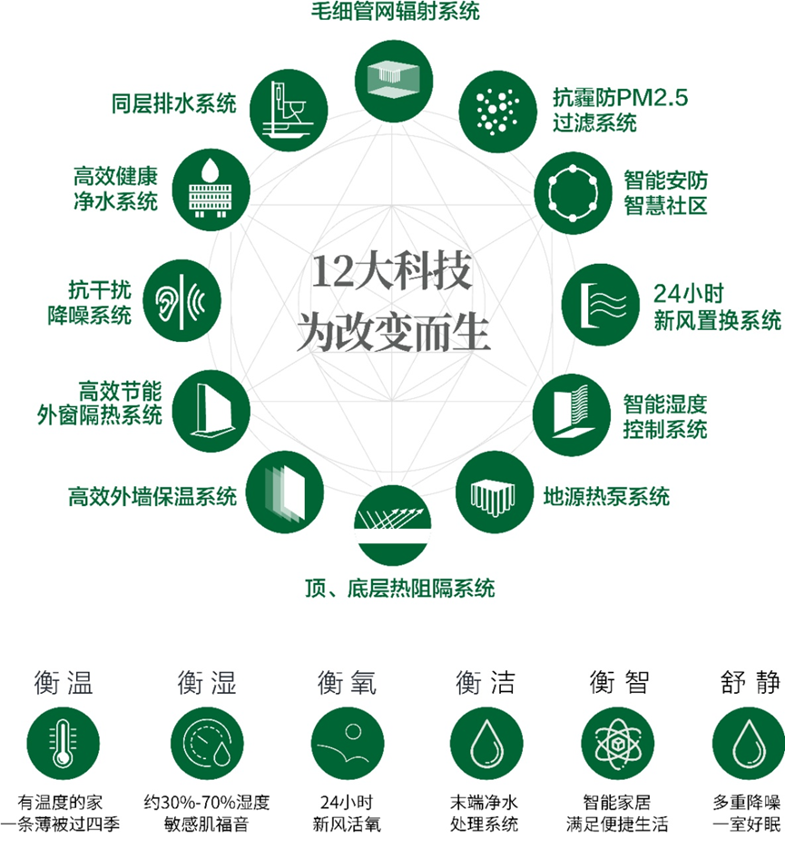 金茂根据北京的气候开创性的打造了十二大绿金科技,五衡住宅,给北京美好生活一个“金茂答案“。