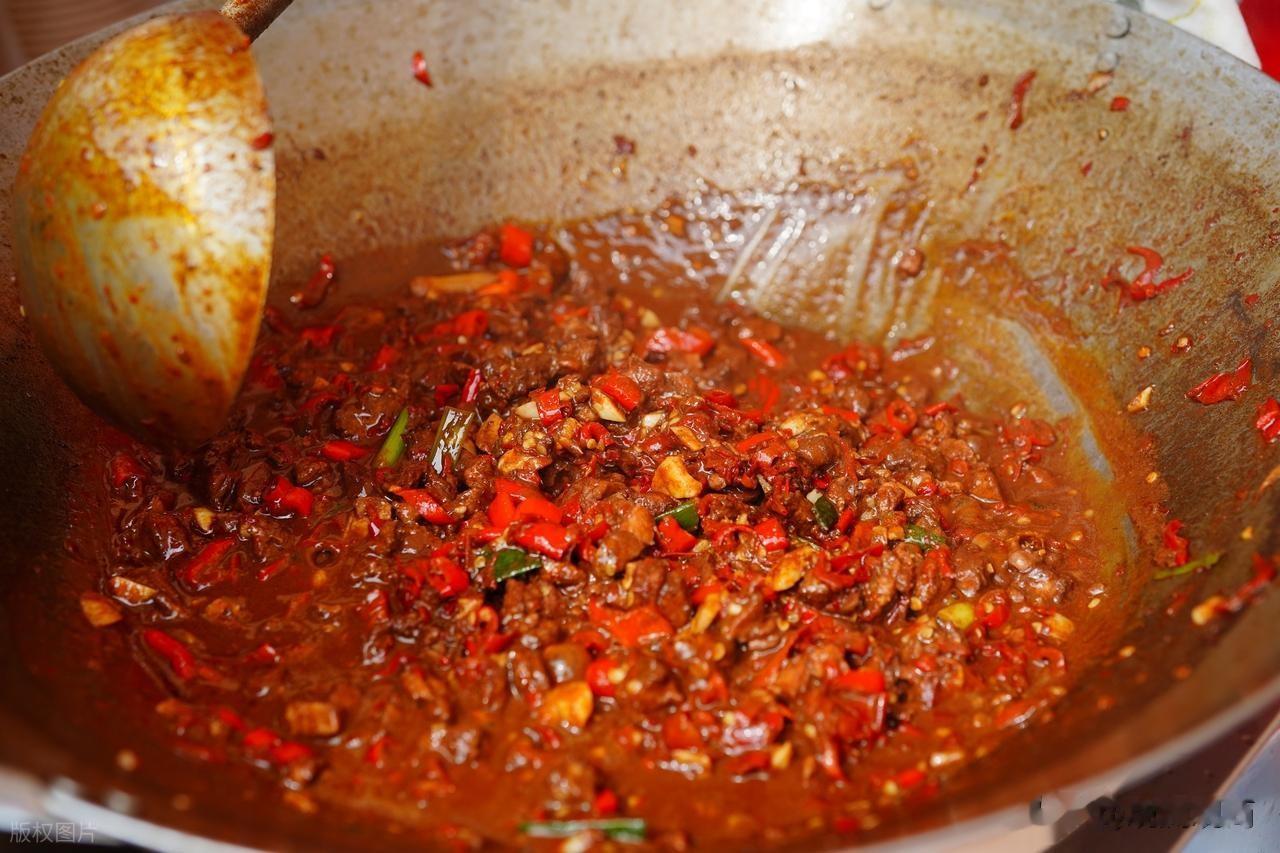 服务员端着这盘“武器”,穿过人声鼎沸的大堂。它所经之处,食客不自觉地深吸一口气——那股混合着焦香、肉香与霸道辣意的“锅气”,像一记直拳,砸在每个人的嗅觉神经上。