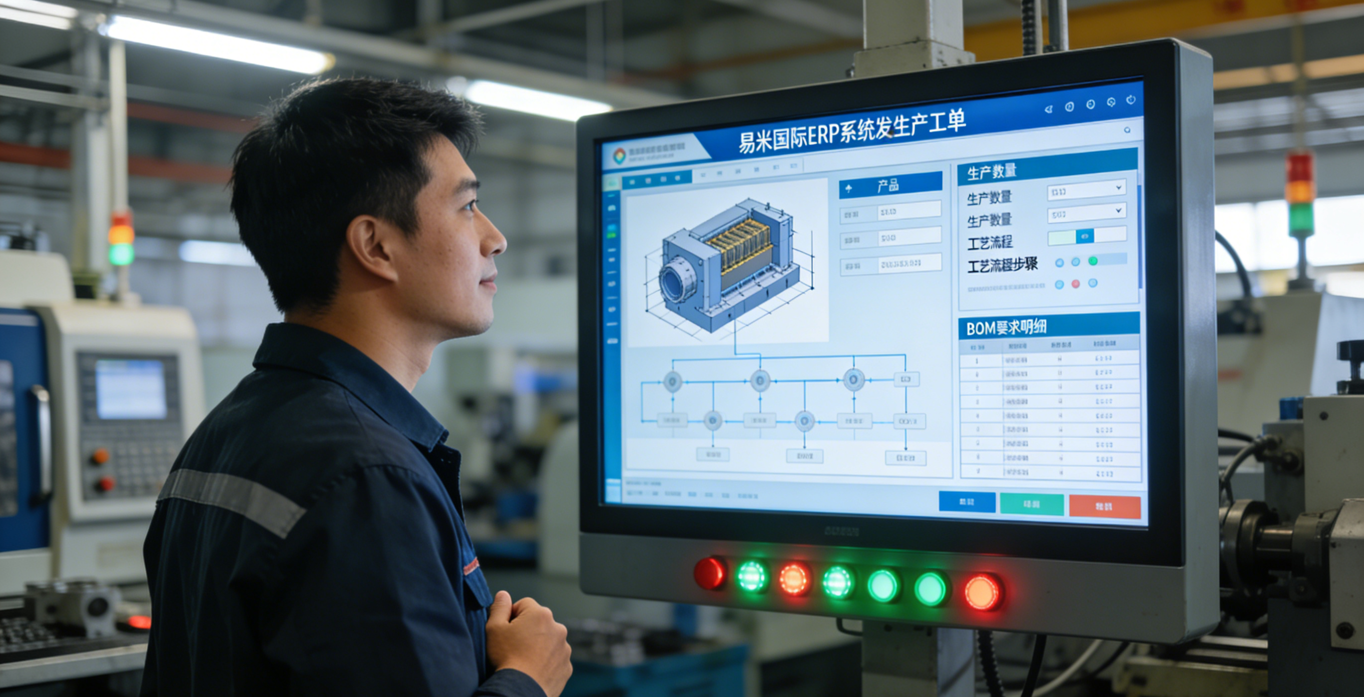 生产任务无纸化派发与接收。 计划部门在易米国际ERP中下达的生产工单,可直接发布至对应车间或产线的数字终端(电子看板、工业平板)。班组长和操作工即时接收任务,清晰查看产品、数量、工艺图纸及BOM要求,彻底告别纸质工单的传递延迟与丢失。