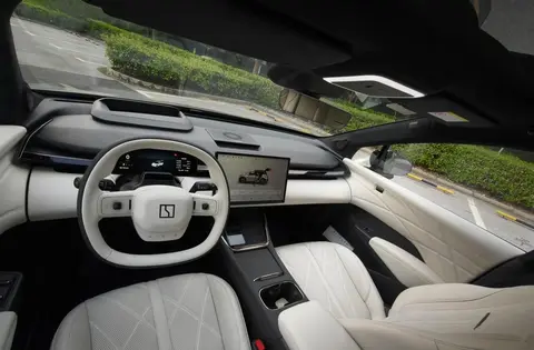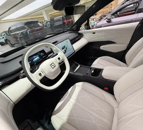 在内饰方面,我们可以看到新车采用的是极简化的布局方式,它采用的是方形的方向盘,中间采用悬浮式的大屏,中控台上采用的是简约化的面板装饰,整体很显豪华感。在动力方面,新车搭载的是365千瓦的电机,最大扭矩573牛·米,百公里加速3.69秒,它的续航里程有530公里和512公里两种规格。