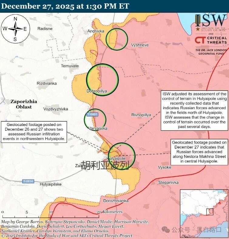 DeepState最新地图显示,俄军并未攻占胡利亚波列,只是抵达外围,灰色区域扩大。