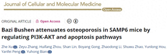 基于此,天津中医药大学联合团队在Journal of Cellular and Molecular Medicine期刊发表了一篇题为“Bazi Bushen attenuates osteoporosis in SAMP6 mice by regulating PI3K-AKT and apoptosis pathways”研究性论文,首次揭示八子补肾通过调控PI3K-AKT与凋亡通路改善骨稳态,为骨质疏松治疗提供了全新科学依据。
