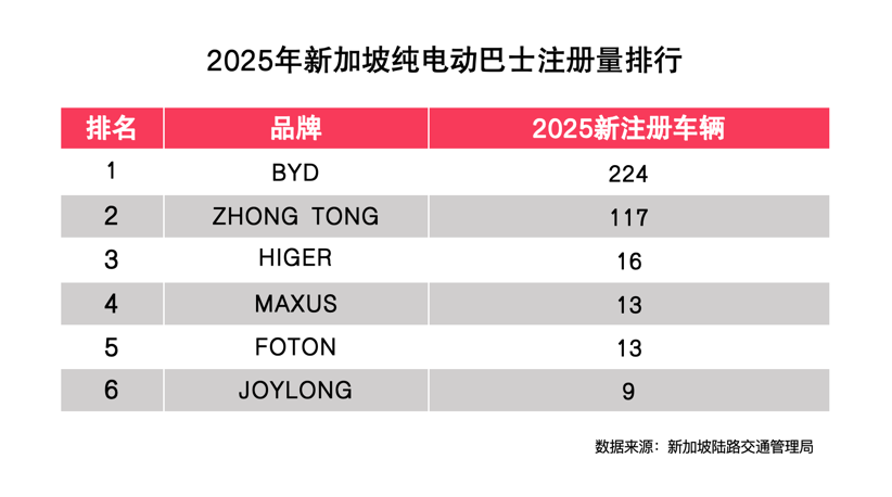 在电动卡车领域,比亚迪于2020年进入新加坡,开始向当地正式交付环卫车T9,成为当地第一家销售电动卡车的公司。2021年-2025年,比亚迪纯电卡车在新加坡五年累计注册量达1450台,排行第一。
