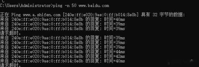 ping -n 50 www.baidu.com # 像测心跳一样连续发50个包