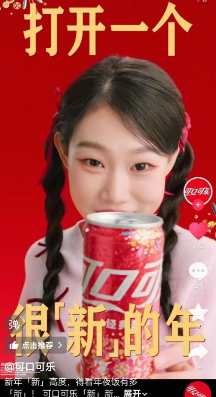2026年1月30日,临近春节,可口可乐官方发布了沈佳润的代言广告。