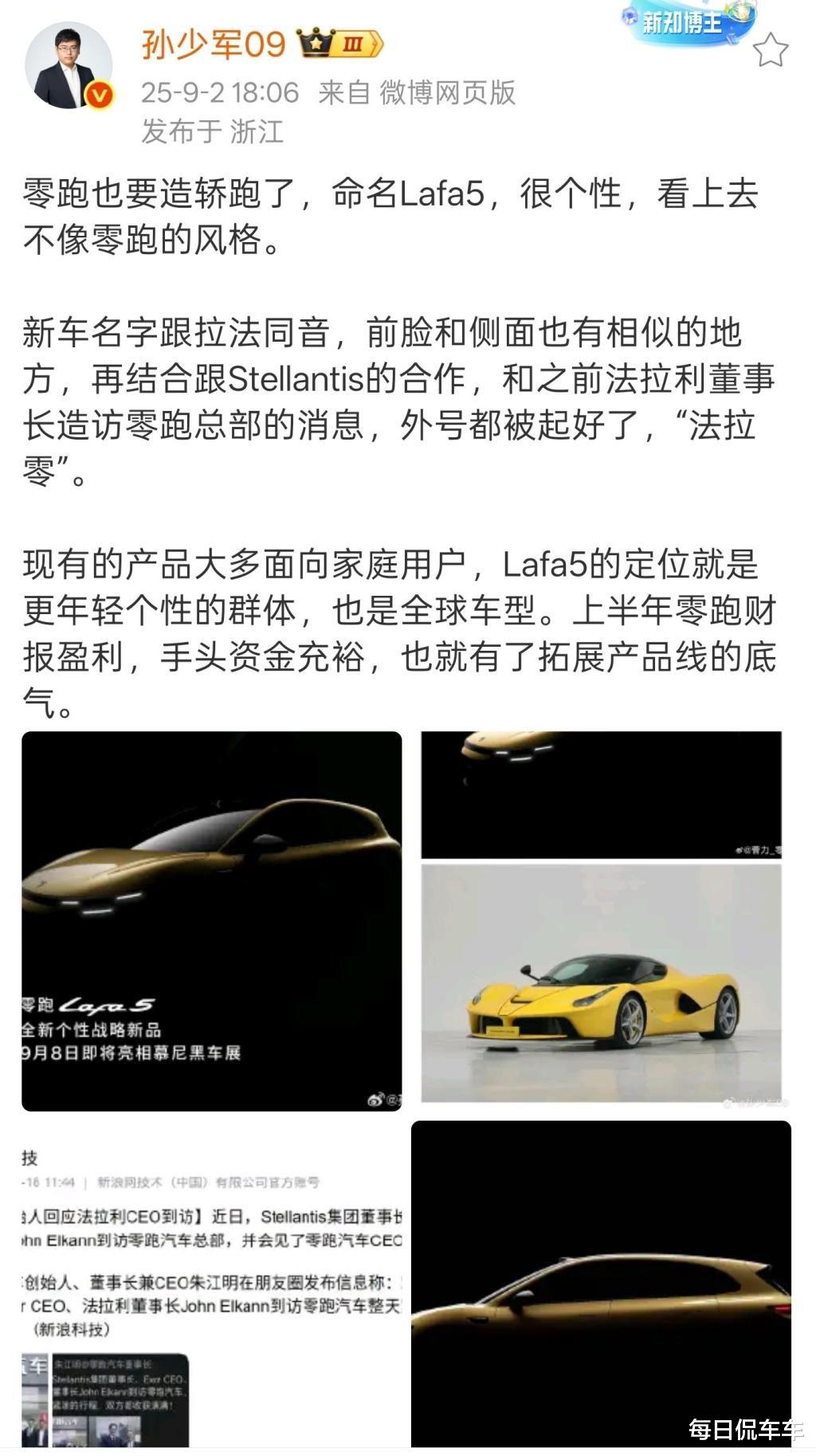 9月2日,孙少军的微博印证了上述推论,连网友对新车的昵称都想好了,就叫“法拉零”。那么,这款新车有什么看点呢?