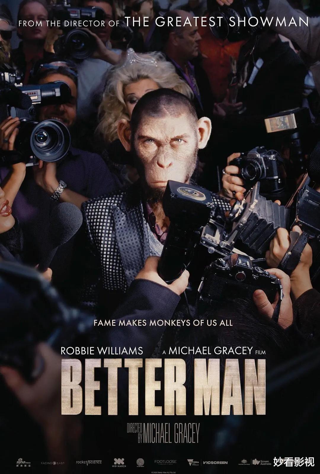 贯穿全片的猩猩设定源自罗比,他曾多次在采访中坦言,自己在舞台上总觉得像一只被训练表演的猴子,感觉自己“比旁人进化得慢”。于是导演将他这种自我认知大胆转化为视觉符号。