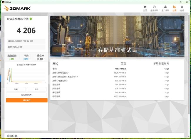3DMark虽然更多是用来测试显卡性能和整机的,但它推出的存储基准测试,则能很好地反映出硬盘在玩Steam游戏时的表现。在该项目中,铠侠VE10的总分为4206分,已经十分强悍了。不过,3DMark的测试成绩跟整机配置具备强相关性,如果CPU和内存性能偏低,那么铠侠VE10很可能跑不到这个分数;相反,如果在现在的基础上超频或者压低内存时序,那么跑分就会更高。大家在自行测试时最好给铠侠VE10匹配合适的硬件。