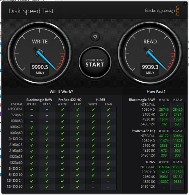 对于生产力用户尤其是视频创作者而言,固态硬盘的读写性能也是影响工作效率的重点参数之一。针对这个需求,BMD推出了Blackmagic Disk Speed Test,用于检测硬盘的媒体读写性能,以及硬盘能否满足各种不同规格视频的外录需求。