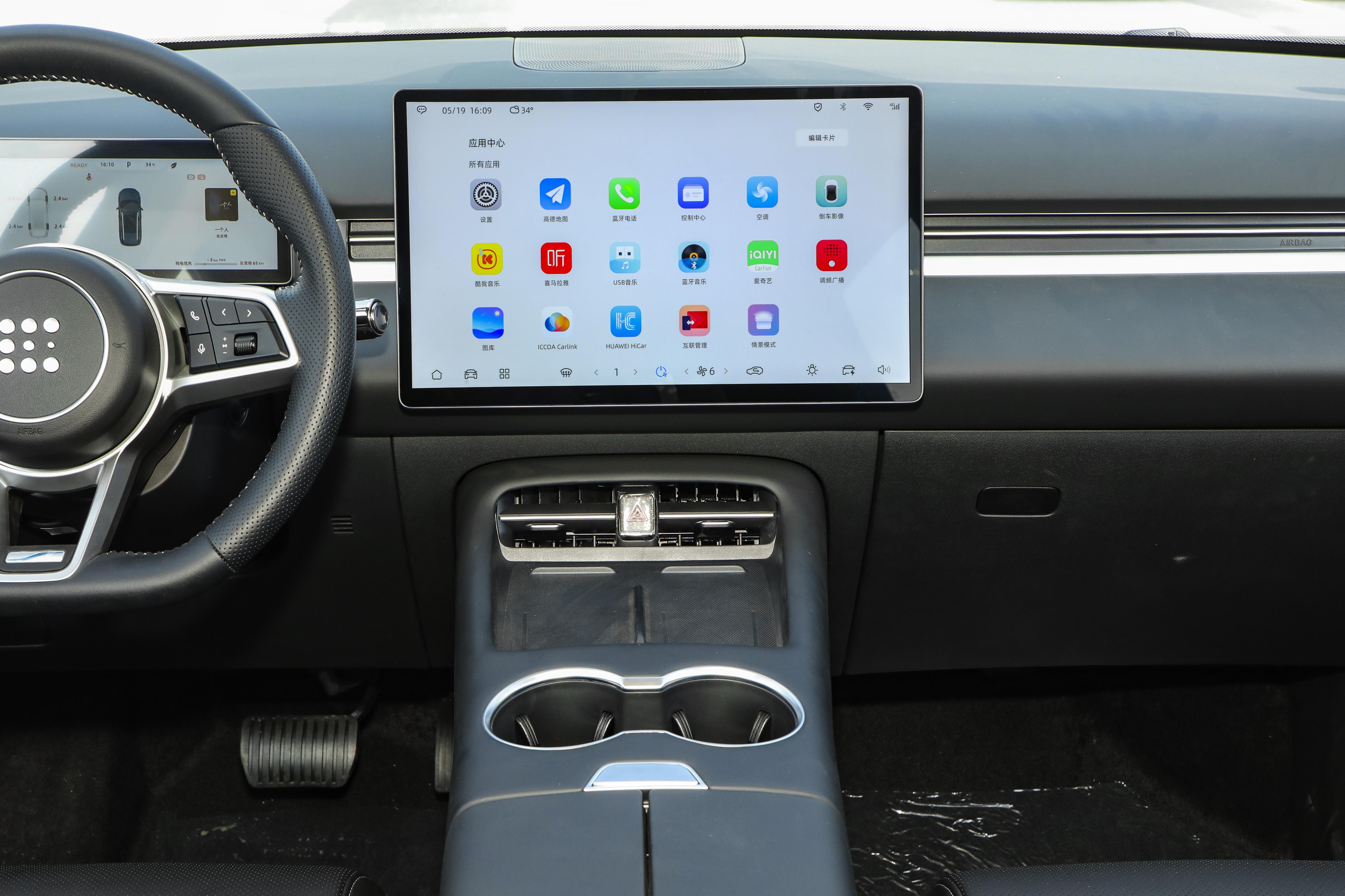 进入车内,内饰设计符合新能源特征,中控台布局简洁清晰直观,车内简化物理按键,配三辐式多功能方向盘、8.8英寸液晶仪表,采用电子怀挡,常用功能都融合在触控屏幕里,悬浮式中控屏尺寸达到了15.6英寸,边框狭窄,显示效果细腻,搭载华为HiCar4.0车机系统,车机UI界面设计的较为清爽,内置不少应用程序,触控操作流畅顺滑,响应速度快,支持HUAWEI HiCar/Carlink连接,手机可与车机智能互联,支持融合桌面、无缝流转等,增加使用便利性。