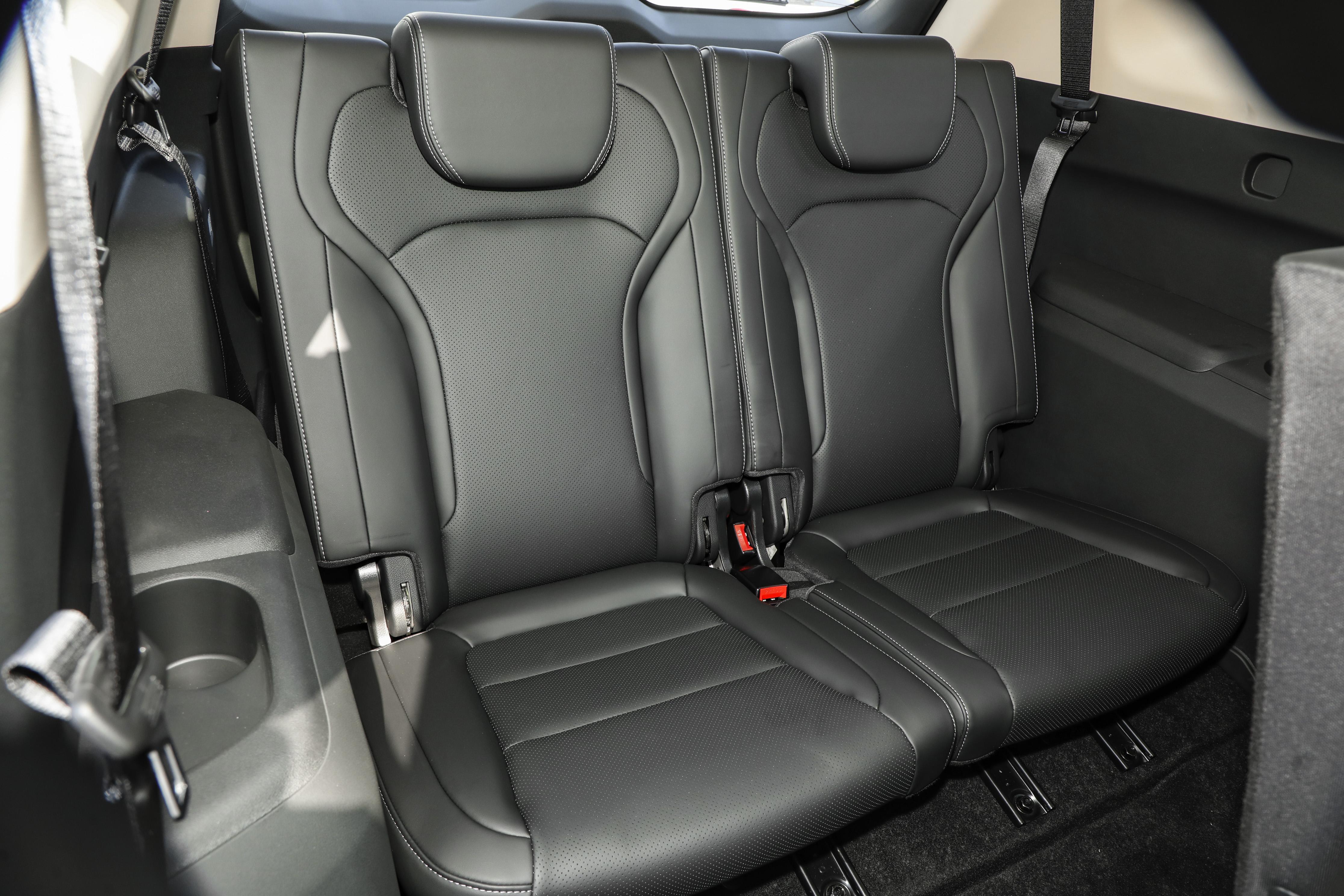 若选择7座版本,第三排不再是传统意义上的“应急座位”。实测显示,第三排头部空间835毫米,腿部空间785毫米,可容纳两名成年人中短途乘坐。并且第三排座椅支持5/5比例放倒,可根据乘客和行李需求灵活调整。座椅表面选用透气性良好的织物与皮革混搭材质,前排座椅提供充足的侧向支撑,长途驾驶不易疲劳
