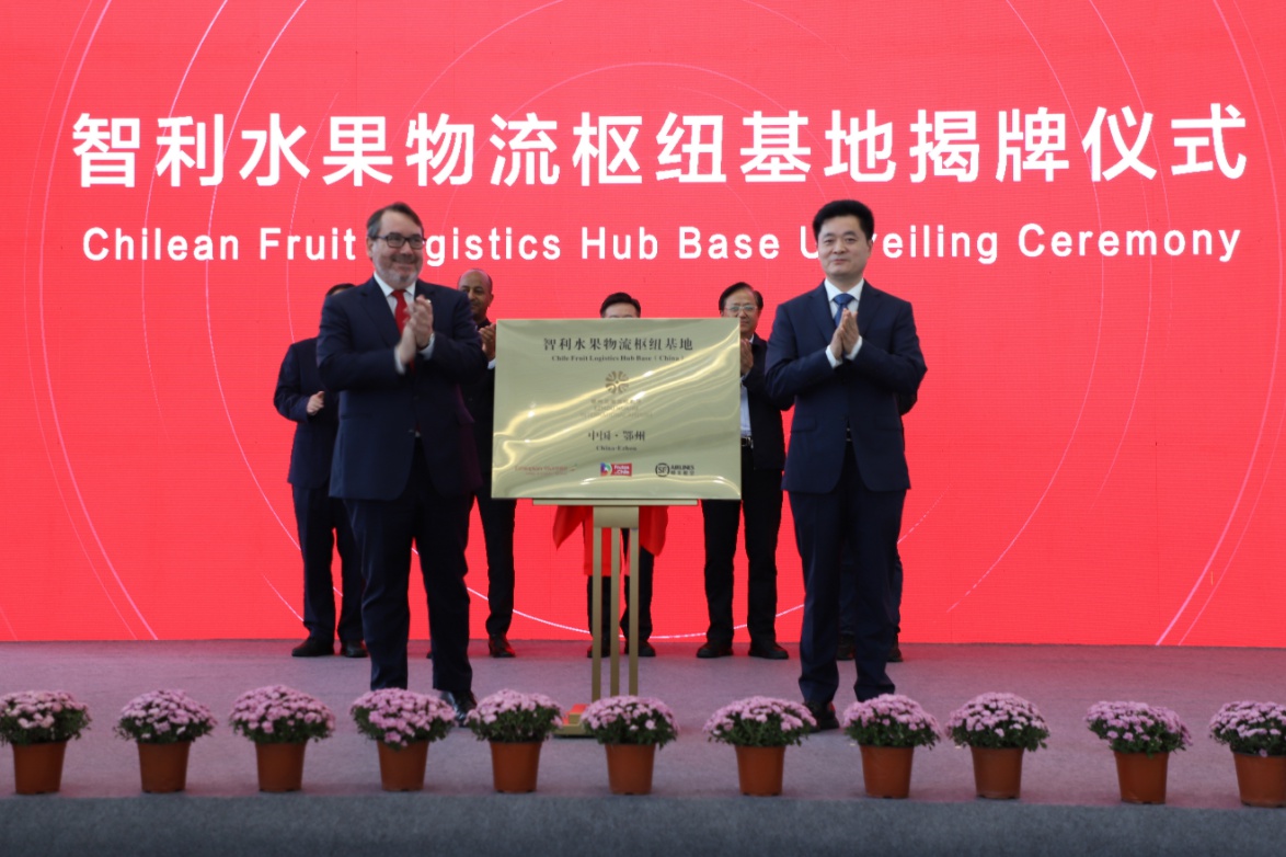 智利水果物流枢纽基地在花湖机场揭牌。 通讯员王星予 摄