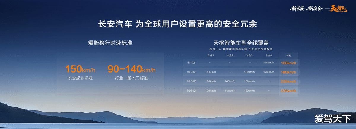 更具里程碑意义的是长安的普惠承诺。当前,爆胎稳行功能多为豪华车选配,用户需额外支付数千元费用。而长安坚信:“安全就不该有高低配,安全就该标配”,在车展发布会上郑重官宣:自2026年5月1日起,所有搭载天枢智能的全新车型和改款车型,包括长安启源、深蓝汽车、阿维塔三大新能源品牌,以及长安汽车的燃油车,均将搭载爆胎稳行功能,不收取任何额外费用。