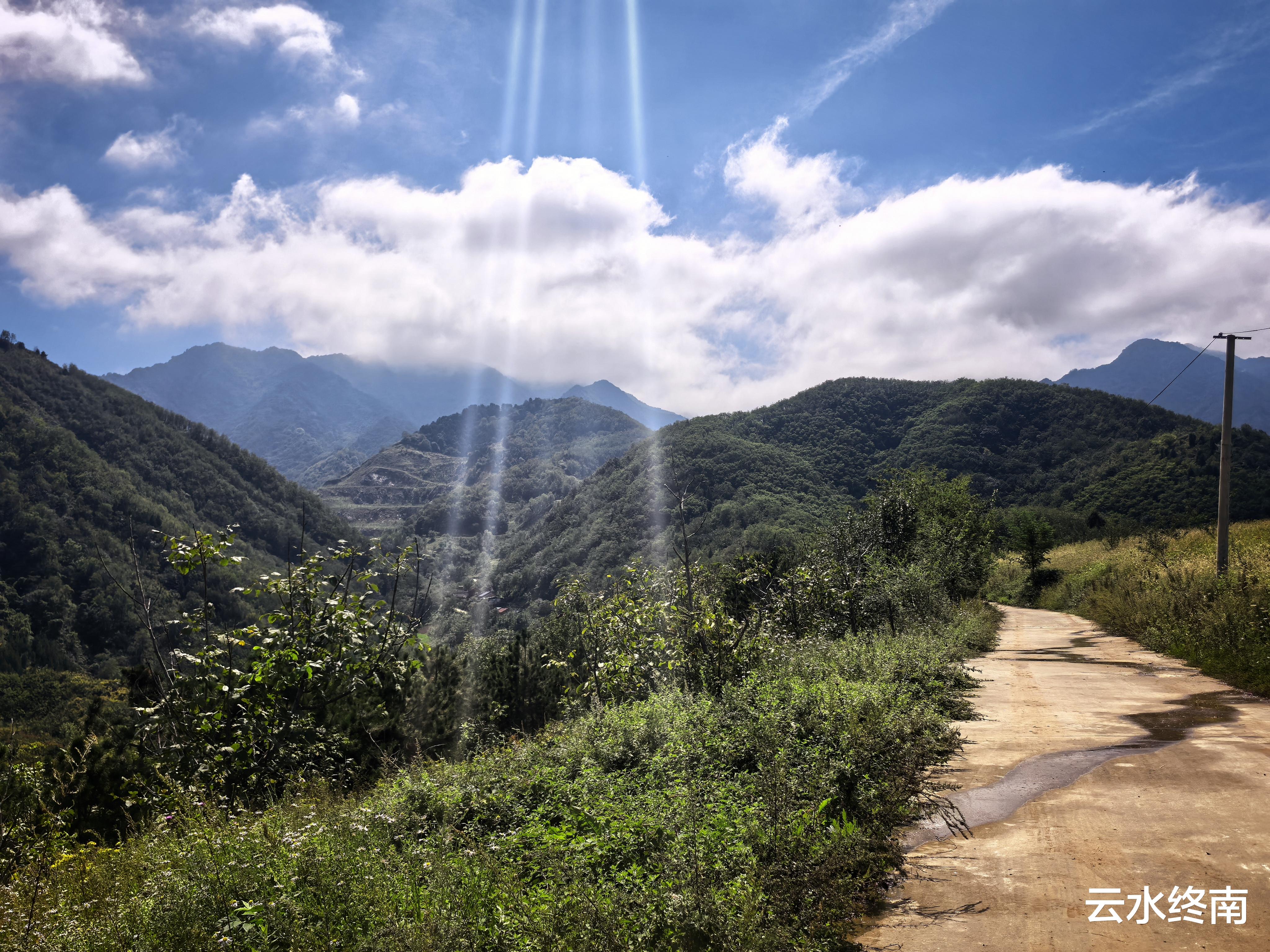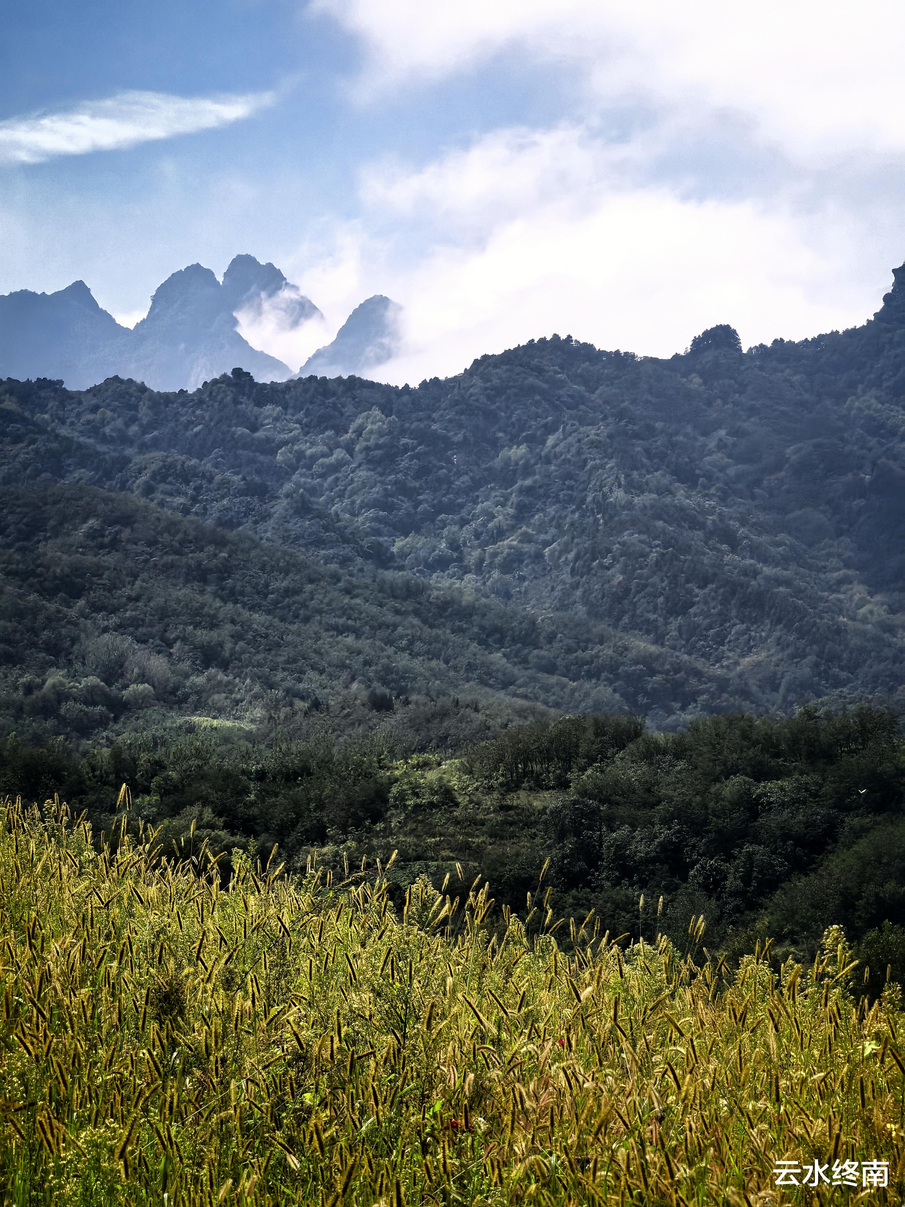那天看完肖家坡戏楼,我往南国孙坡,从关中环线下面穿过,沿着水泥路往姚家寨林家寨方向,一抬头,就看到眼前云雾缭绕的大峪口。