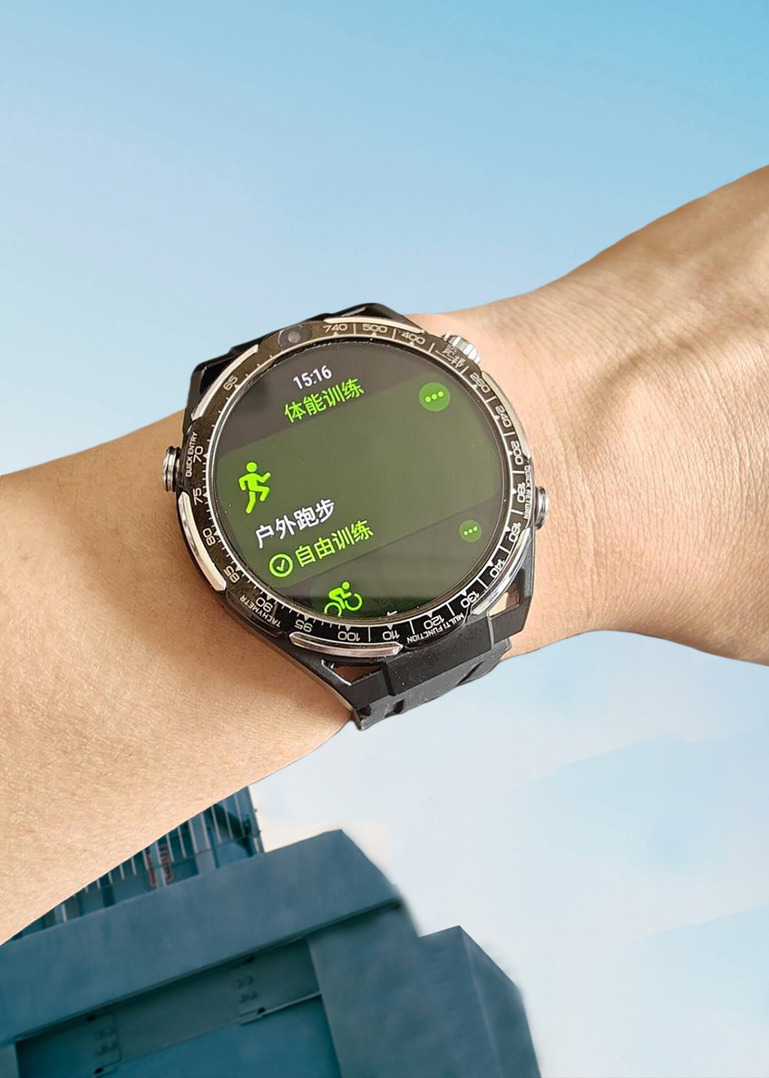 年轻人拒绝笨重与存在感过强的设备。览邦Watch Ultra的45.3克重量与15毫米厚度,带来了真正的“无感佩戴”。无论是在户外奔跑,还是在健身房进行力量训练,手腕几乎感受不到负担,避免了传统智能手表常见的“坠手感”。这种轻盈,让科技从“需要被感知的设备”变成了身体“无缝的延伸”。它采用的圆表设计语言,在彰显科技感的同时,也保留了经典腕表的审美,兼顾了运动场景与日常搭配,满足了年轻人对产品“既要功能强大,又要颜值在线”的挑剔要求。