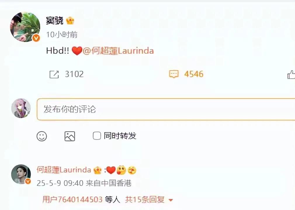 窦骁卡点在微博上给何超莲庆生,何超莲回应的很慢,直到几个小时之后,显然此前,并没有收到消息。