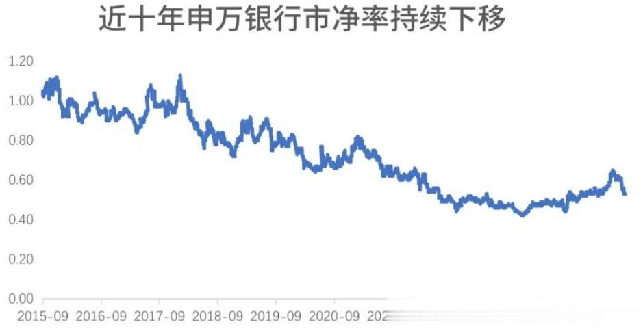 什么意思,其实就是在过去十年中,有超过四分之三的时间银行板块估值比现在更高。