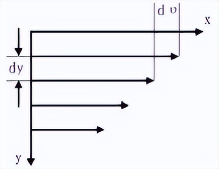 剪切速率是流体层间运动速度梯度,是流体运动快慢的表征,在剪切力作用下,流体沿x轴方向流动,流层间的速度分布如图2所示,则剪切速率γ为: