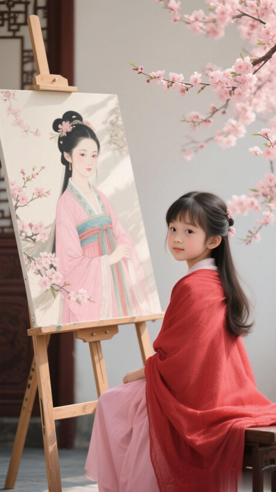 初看这幅画,目光首先会被画面中的主体——母亲与孩子所吸引。母亲的形象占据了画面的中心位置,她的面容刻画得细致入微。画家运用细腻的笔触,描绘出母亲脸上那温柔而坚定的神情。她的眼神中充满了无尽的爱意,宛如一泓清泉,静谧而深邃,那是一种只属于母亲的独特目光,饱含着对孩子成长的期待、对孩子安危的关切,以及对孩子所有一切的包容。她的嘴角微微上扬,似有一抹淡淡的微笑,这微笑如同阳光穿透云层,给整个画面带来了温暖的气息。