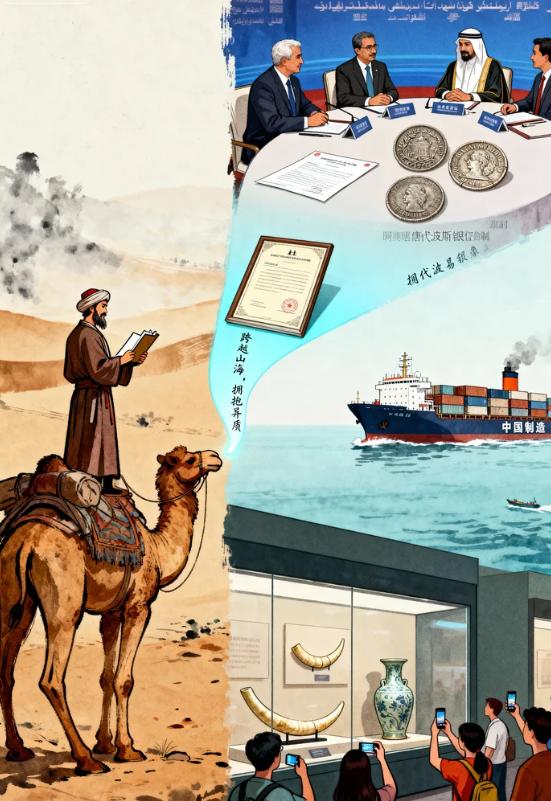 千年后的今天,当我们在“一带一路”国际合作论坛上看到中阿商人洽谈贸易,在博物馆里见到唐代波斯银币与阿拉伯象牙,在远洋货轮上看到“中国制造”驶向波斯湾时,仍能清晰触摸到杜环“沧海录殊方”的精神脉络。