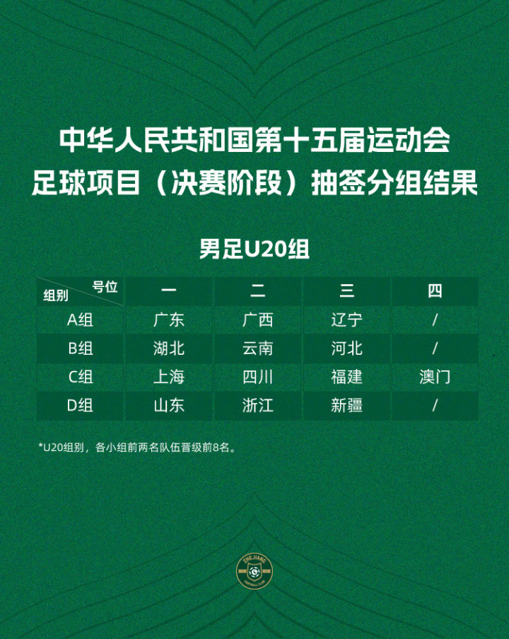 在今年6月初结束的全运会U20男足资格赛中,浙江队以2胜1平1负的战绩排名小组第二,顺利晋级决赛阶段。
