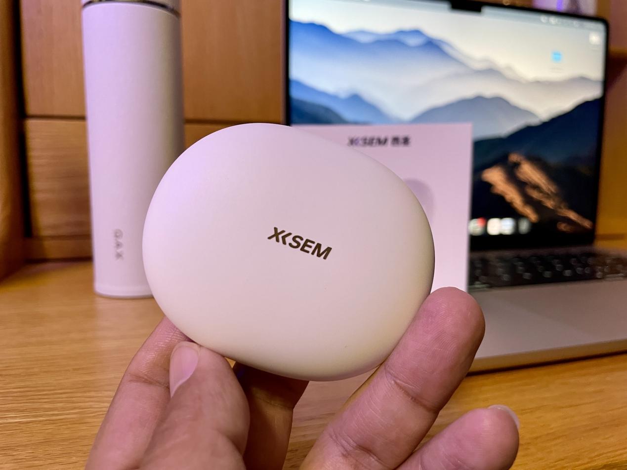 Olite2的充电盒非常小巧,圆润的设计手感很好,表面是磨砂材质,不仅防指纹,还很有高级感。充电盒的大小和一块曲奇饼干差不多,可以轻松放进口袋或包里,随身携带毫无压力。