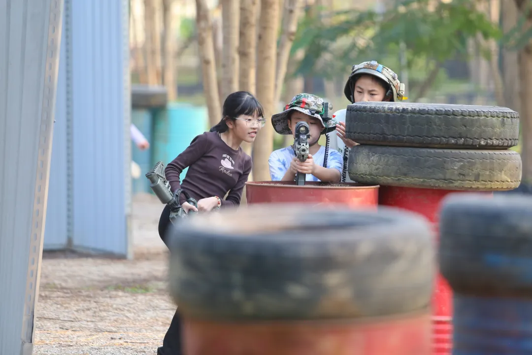 户外拓展真人CS将活动推向高潮。孩子们在模拟战场中践行“奋勇拼搏,超越自我”的信念,战术配合、勇敢冲锋;家长们在陪伴中见证孩子的成长与突破。这场活力四射的对抗不仅锻炼了身体素质,更深化了团队意识。