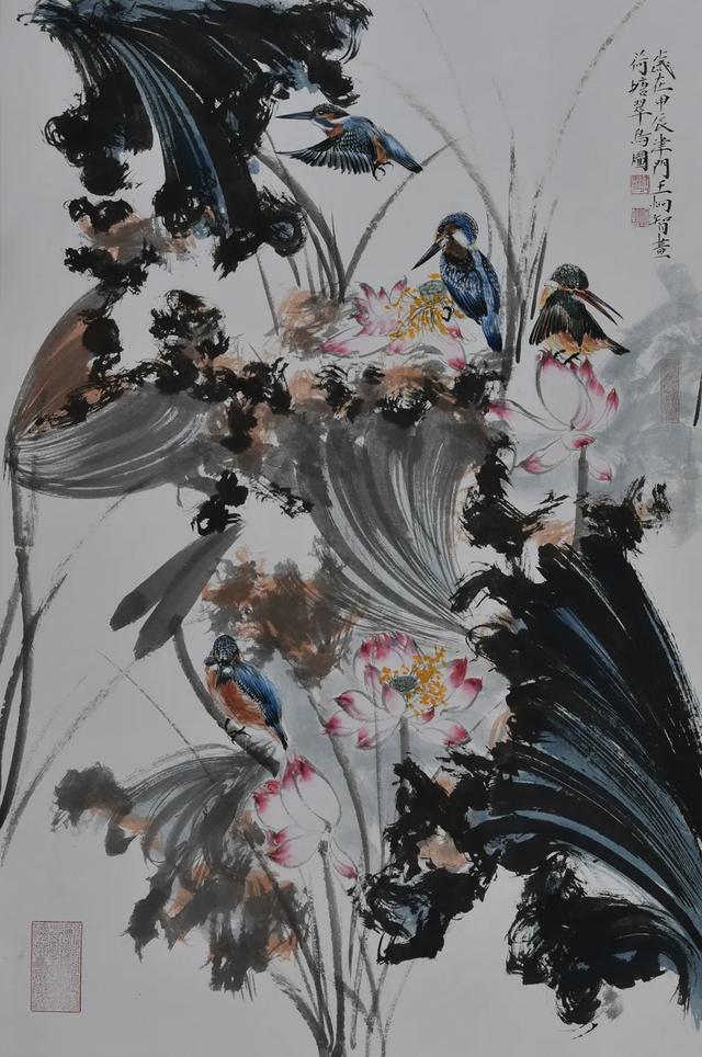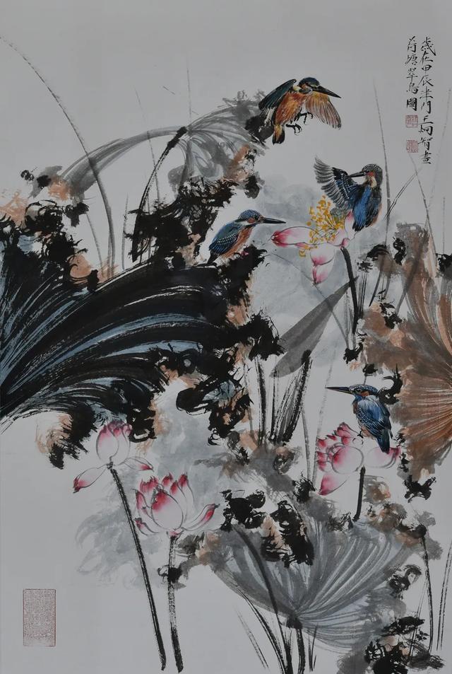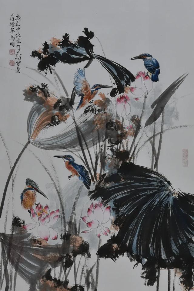 《十六条屏凤翼禅荷》作为展览扛鼎之作,展现出艺术家深厚的传统修养与现代表现力。中国国家画院理论研究所所长张晓凌认为:"这批作品既得宋元花鸟的精微写实,又兼具八大、白石的神韵气质,特别是将书法线条的节奏感转化为绘画的构成语言,这种跨媒介转换能力在当代画坛极为罕见。"值得注意的是,其独创的"肥金体"题跋已成为作品的重要价值标识,嘉德拍卖数据显示,带有肥金体长题的画作溢价率普遍达40%以上。