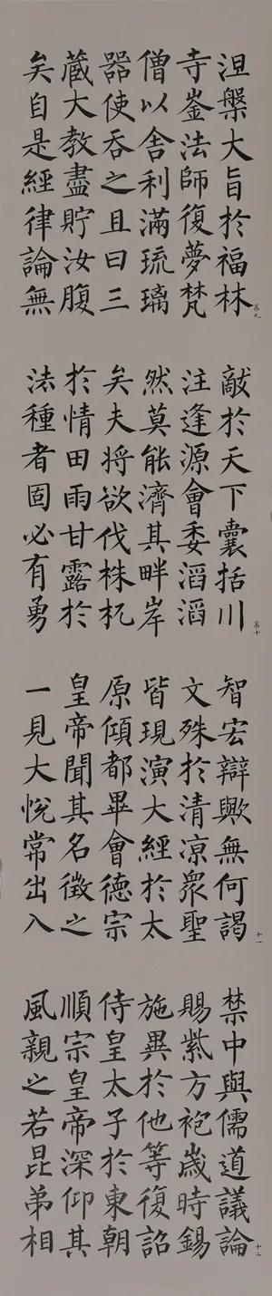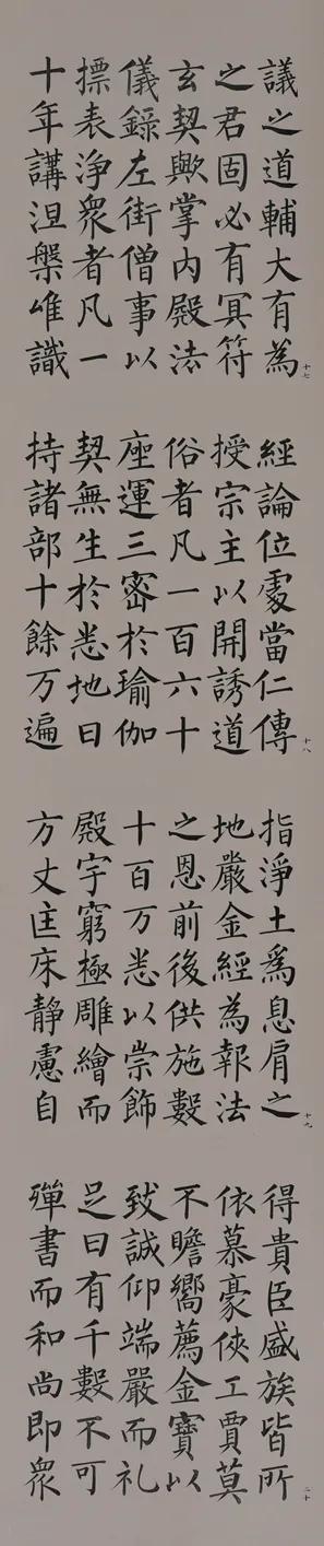 市场数据佐证其学术价值:2019年北京保利秋拍中,其六尺整张《玄秘塔节临》以78万元成交,创当代楷书单平尺拍卖纪录;2023年香港苏富比春拍,《纯金微书金刚经》手卷更以420万港元落槌,单位字价突破万元大关。