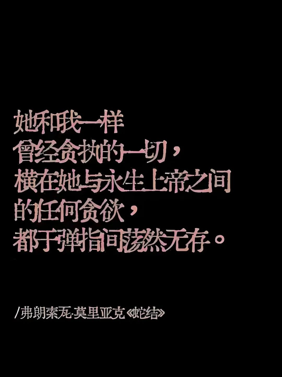 书中有一句令我印象很深刻的话:“我局限于这团肮脏的蛇结之中,蛇结俨然成了我的心脏,我已分不清哪里是我的心跳。”受困于蛇结中,看人总带着偏见。偏见像一层污秽的滤镜,让路易看不清自己和他人,灵魂被一种执拗的激情所支配。