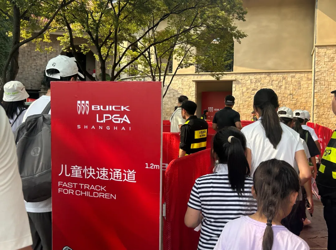 高尔夫确实是项好运动,不止是“双线”通杀,还可以当作升学通道“三线”作战。在高尔夫赛事中,跟着家长一同来观赛的青少年总是很多,高尔夫教学机构的宣传也无处不在。在旗忠,运动员在结束比赛走回休息室的途中,会有一小段与球迷的互动空间,保安会在运动员到来前开放通道,其中有一条就是儿童快速通道。