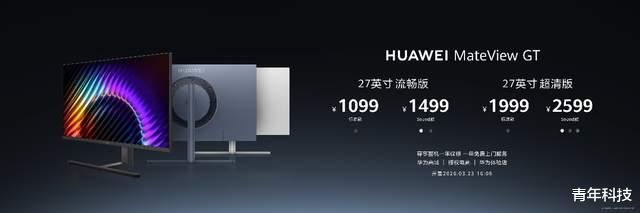 此次HUAWEI MateView GT 27英寸上新了多个版本供用户选择,流畅版标准款售价1099元、流畅版Sound款售价1499元、超清版标准款售价1999元、超清版Sound款售价2599元。将于3月23日 16:08,在华为商城、华为授权电商、华为体验店等平台全面开售,首销月购机优惠100元,同时购机可尊享整机1年保修,1年免费上门服务。