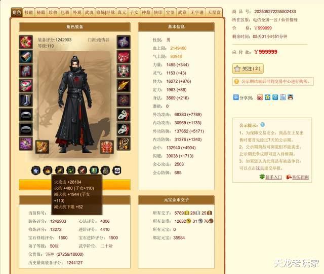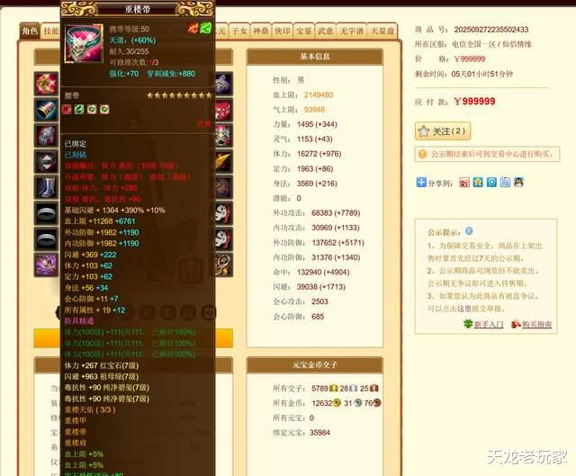 而此次名动江湖只有13个重楼腰带。就在昨日,有一位重楼腰带大佬出售账号,这也是天龙格子上第一个重楼腰带。