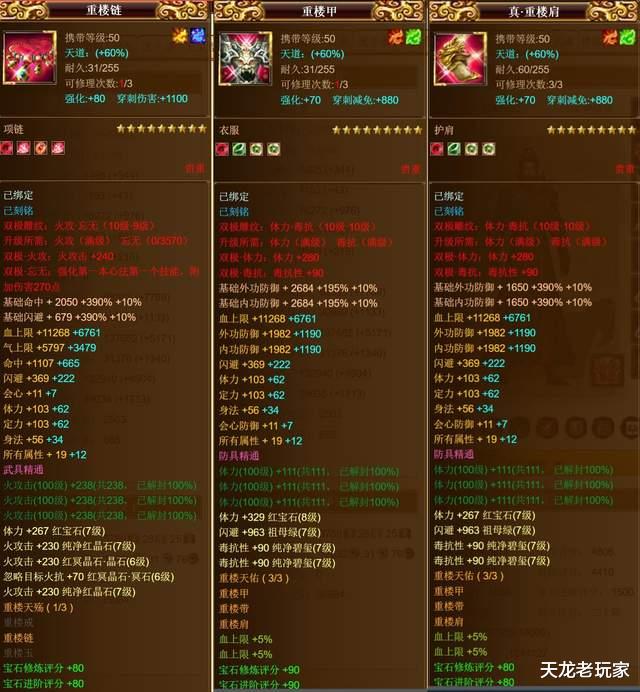 而除了重楼腰带之外,这个号上还有3个重楼,包括重楼链、重楼甲,还有个真重楼肩。