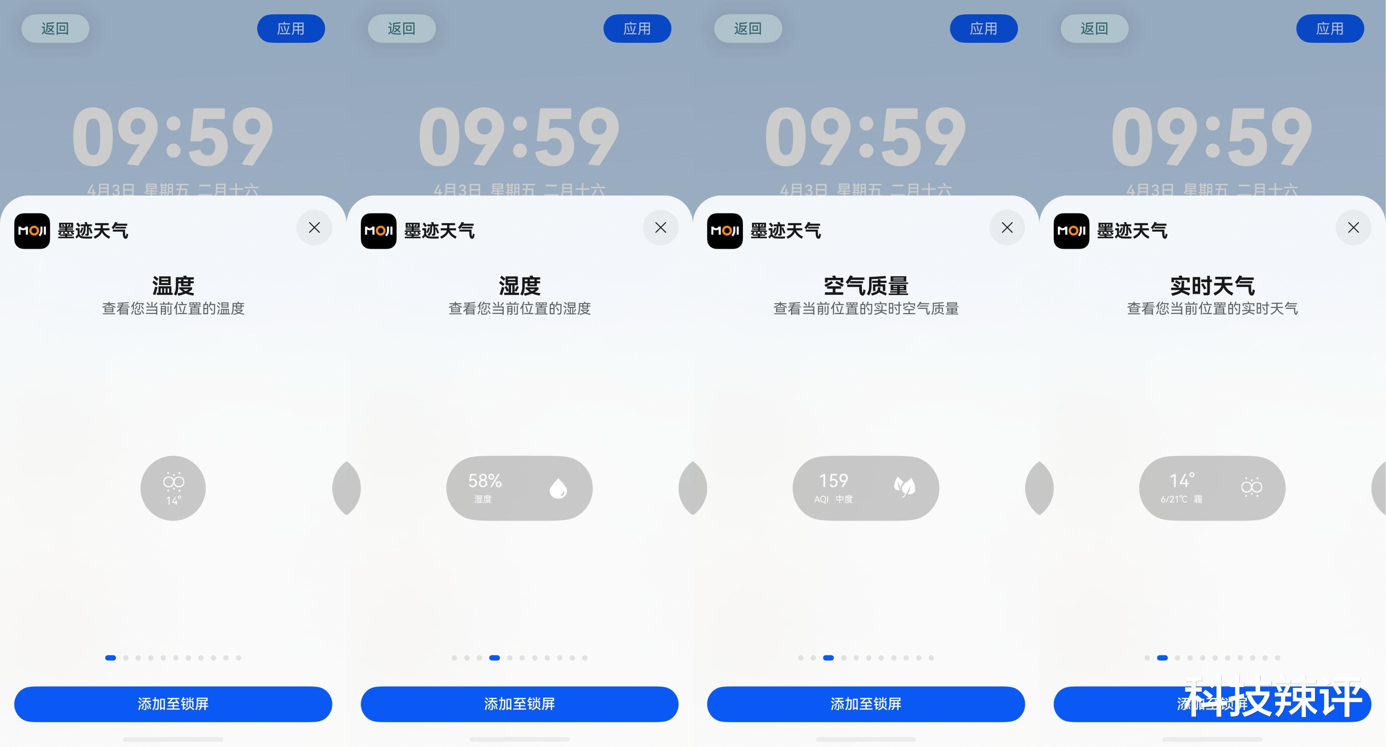 设置方法也超级简单:在锁屏界面双指捏合、解锁手机,找到墨迹天气,即可随心添加天气锁屏卡片。