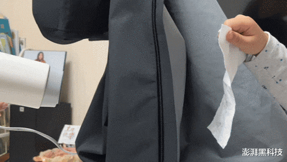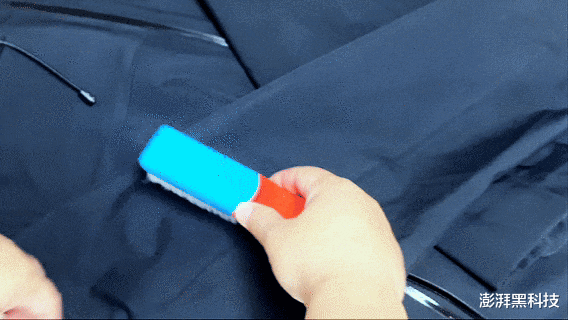 3、透湿测试:用加湿器贴着衣服内侧,湿气也能透出来。30000g/m²/24h的透湿率加上AMES生物微孔黑科技,爬山爬到汗流浃背时,汗气可以排出去了。以前总说防水不透气,现在这技术直接把这给打破了,透气不闷更舒适。