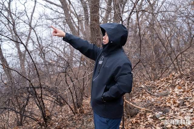 特地安排了周末去爬山,上午也赶上了降雨,中午雨停了才出发。在经过2~3小时的体验后,来说说这件冲锋衣的本身。实测防护性能,今天在山顶线上遇到3-4级大风时,拉紧风帽抽绳的后,刺骨的寒风便被隔离在外了,能应对这个气候,当天温度在10度左右时,里面穿搭配的绒衣,有这个冲锋衣包裹着身体很暖和,而且透气性也很好不会很闷。当树枝上掉落的零小雨点打在冲锋衣上也没有湿,衣服的面料起到了很好的防水作用。
