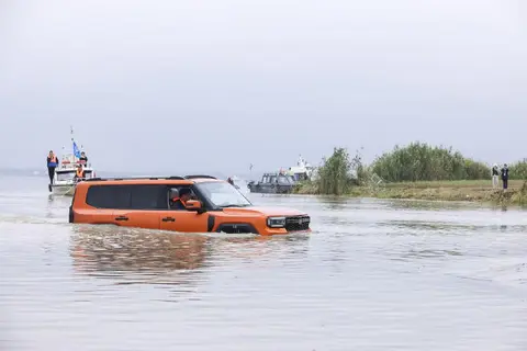 支撑这一壮举的核心技术特别先进,通道主动密闭技术在入水后自动触发密封胶条膨胀并关闭底盘排水孔,乘员舱可承受 20 千帕水压彻底杜绝渗水;6 轴陀螺仪每秒采集 100 组车身数据,遇乱流时 0.5 秒内即可调节推进器功率修正姿态;再加上船舶级防锈工艺加持的涉水部件,全方位保障了水域行驶的安全性。此外,一体式无孔油漆车身与主动空气循环系统的组合,进一步强化了其防水密封性能,让这场 “水上穿越” 从不可能变为现实。
