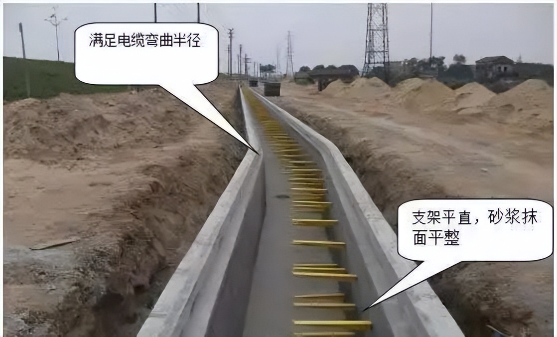 (1) 在电缆沟分界处,用砂子将电缆沟空隙部分全部填满,分隔成两个空间;