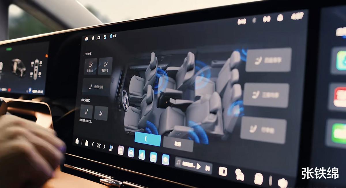 内饰部分,新车会有6座和7座版本,中控台将会使用横贯式的悬浮大连屏,其中仪表盘部分是收窄的造型,中控屏下部使用了带有贯穿式镀铬饰条的空调出风口,视觉效果很别致。另外新车的前排扶手箱内还提供了冷暖冰箱。