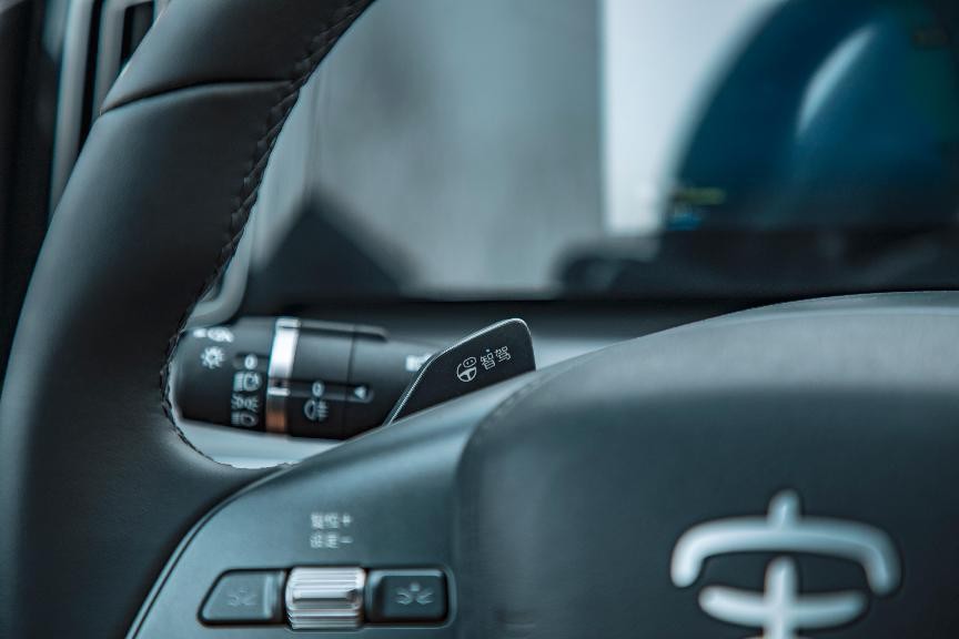智驾的开启拨片,在设置好导航之后,只需要轻轻一拨,智驾系统便会激活,从而实现高速、快速路的智能导航,非常实用。