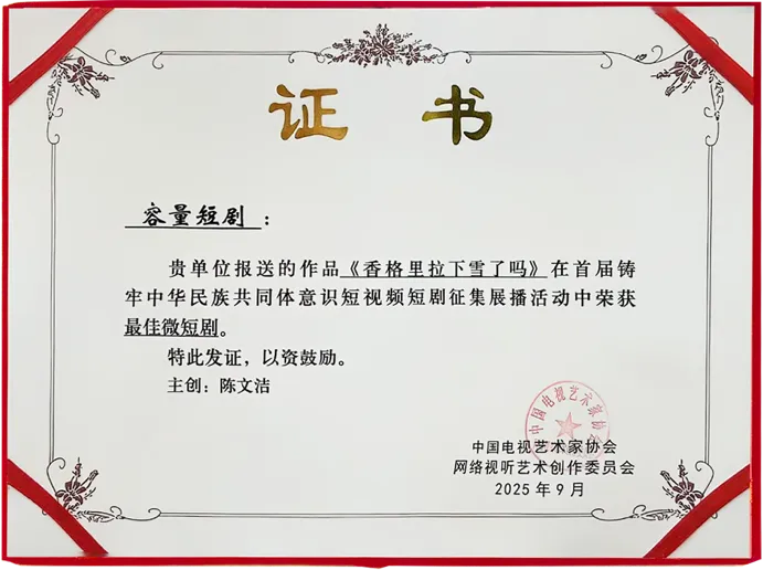近日,第五届海峡两岸暨港澳地区优秀视听作品云展览及第二届海峡两岸青年“海融竞逐”微视听展播季圆满落幕。由我州香格里拉小益西传媒出品的文旅微短剧《香格里拉下雪了吗》再传喜讯,一举斩获云展览“微短剧佳作奖”与展播季“海融勇进”奖,成为迪庆文化“走出去”的又一亮眼名片!