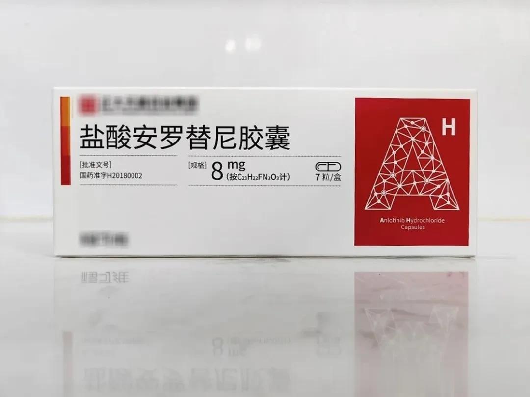 安罗替尼是一种靶向药的化学名,这种药是我们中国药企创新研发的原研药,获批用于非小细胞肺癌三线治疗、小细胞肺癌三线治疗、软组织肉瘤一\二线治疗、甲状腺髓样癌一线治疗、分化型甲状腺癌一线治疗。