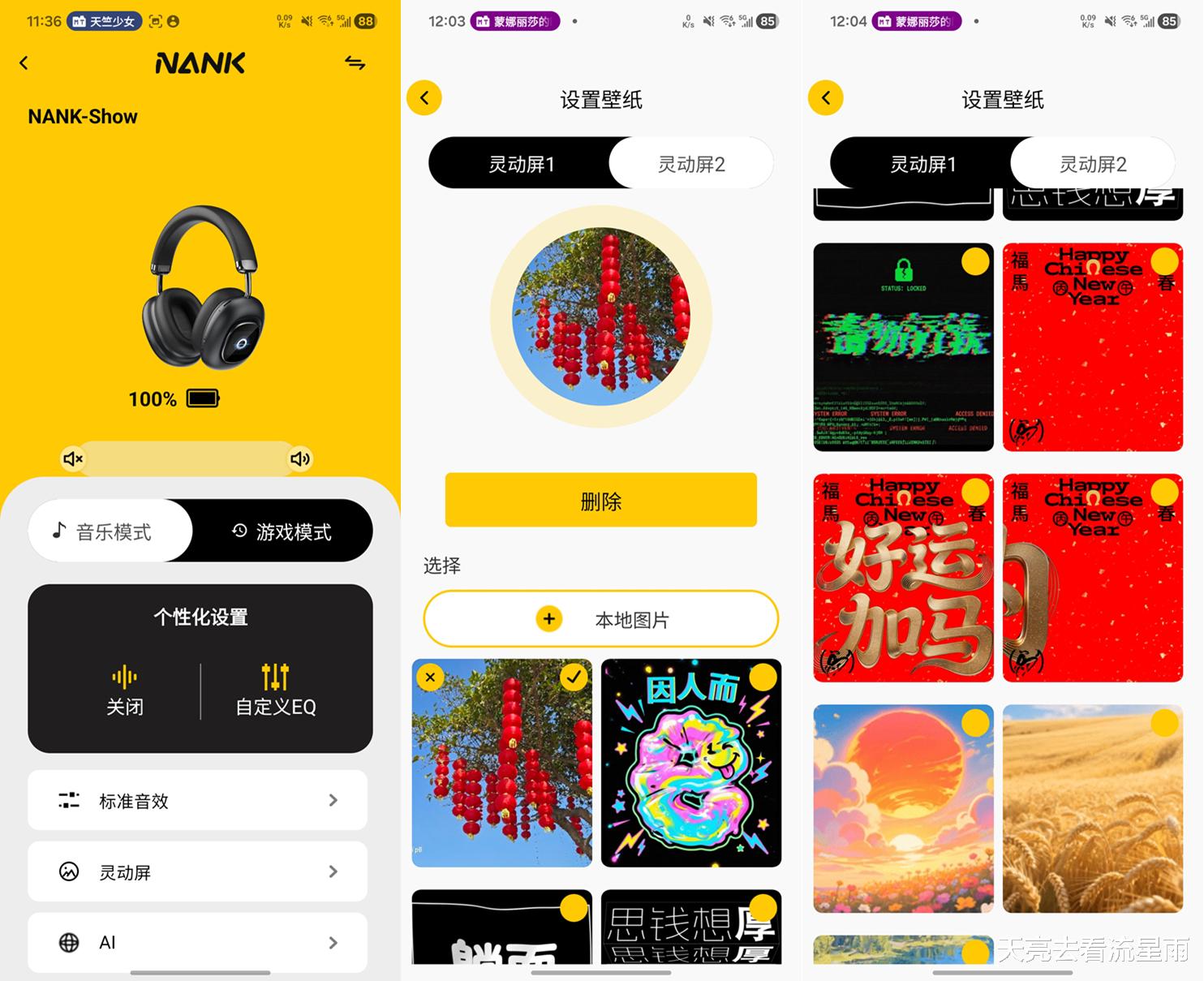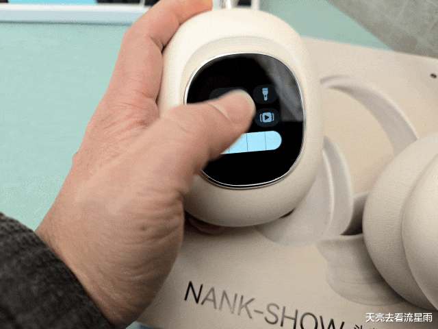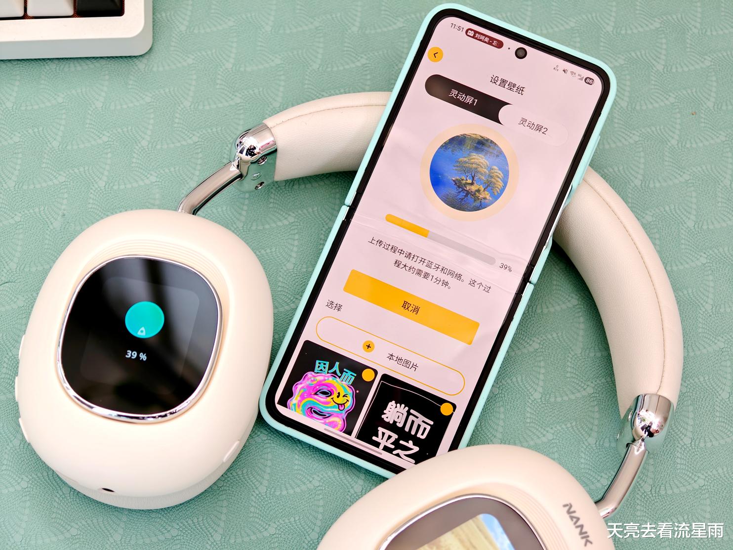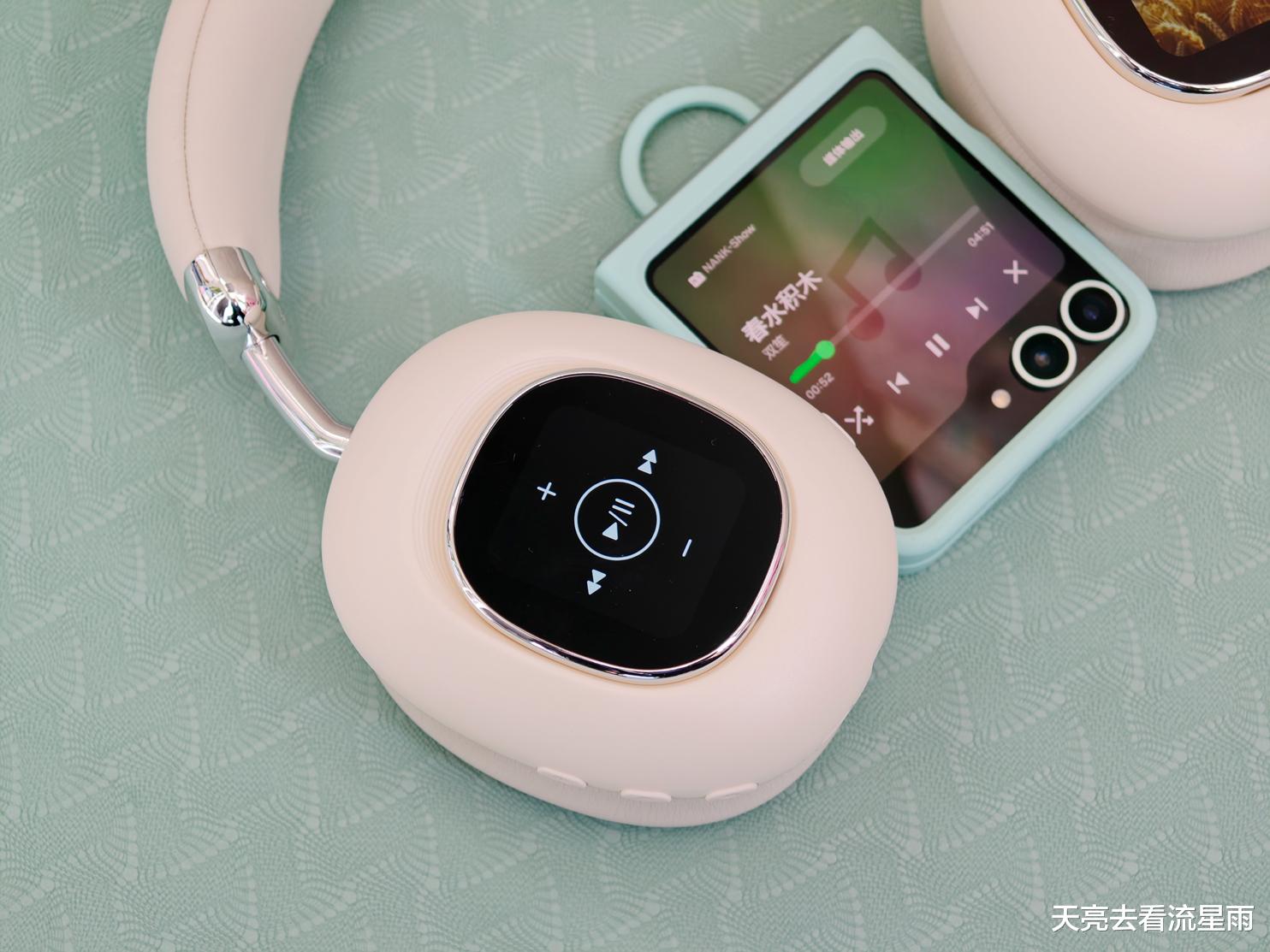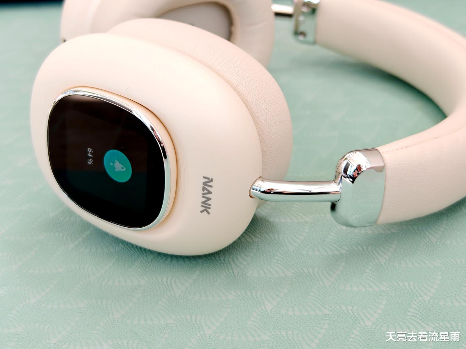 南卡Show的整体造型遵循了常规头戴式耳机的设计,最大亮点在于两侧可拆卸的磁吸式灵动屏,支持触控操作,可显示歌曲封面、电量、降噪模式等信息,还能自定义表情包、图片,甚至实现双屏联动,玩法丰富。