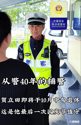 他叫“贺立田”,陕西省渭南市蒲城县公安局交通管理大队兴镇中队辅警,现年60岁,2007年进入交管大队,在2025年10月退休,应该是累计工作已有40年。