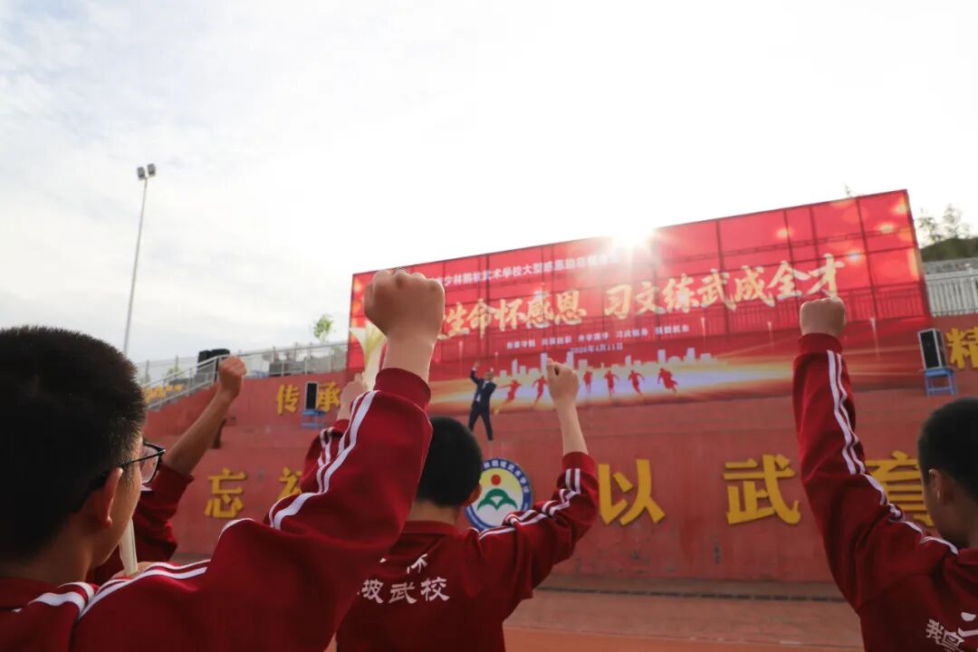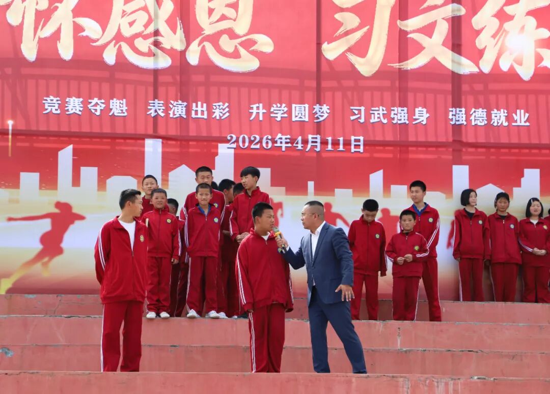 文以载道,武以修身,文武兼修,方能成才!他勉励同学们,在习文练武的道路上,既要锤炼过硬本领与坚韧品格,也要涵养君子之风,牢记“珍爱生命、心怀感恩、习文练武、立志成才”的嘱托,把感恩之心与习武之志转化为实际行动,脚踏实地、奋勇拼搏,努力成长为有理想、有道德、有文化、有纪律的新时代社会主义接班人,争做眼里有光、身上有汗、心中有爱、脚下有路的新时代好少年。