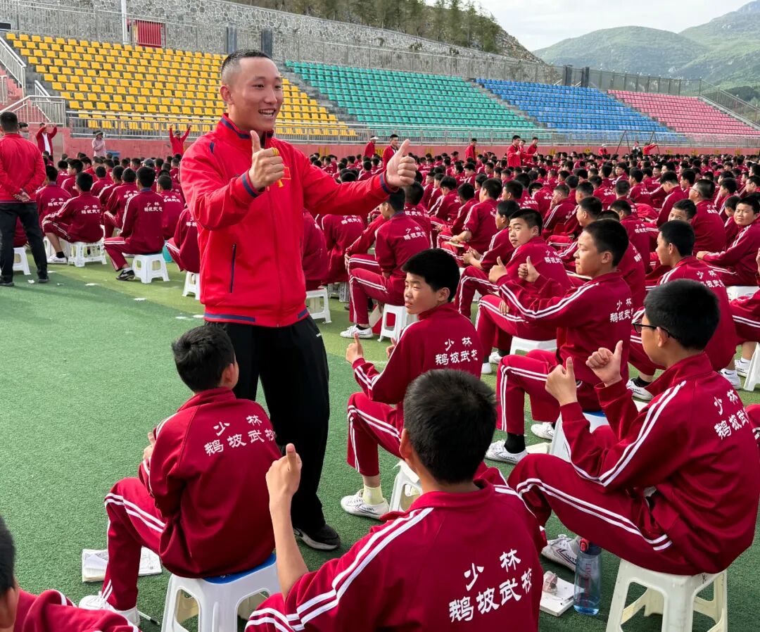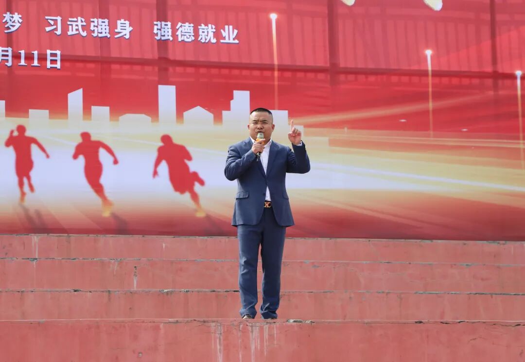 鹅坡武校政训总教练赵跃作动员讲话。他表示,长期以来,梁少宗校长始终心系师生成长,坚守教育初心,以深厚教育情怀引领学校高质量发展,助力广大学子成长成才。本次报告会能够顺利举办,离不开梁校长的悉心指导与大力支持。他指出,全体师生要以此次报告会为契机,常怀感恩之心,感恩党和祖国的守护,感恩父母的养育关爱,感恩老师与教练的谆谆教诲和悉心打磨。他要求,全体人员要严守纪律、保持肃静,以专注认真的态度充分展现鹅坡师生良好的精神风貌;要勤于思考、主动交流,紧密结合自身学习和训练实际,多反思、多感悟,真正做到学思结合、学以致用;要认真总结、持续提升,把感恩之心转化为奋进动力,将励志之志融入日常一言一行。