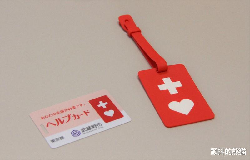 日本这款以红色为底色、印有白色十字与爱心图案的爱心求助标识,初衷是为需要帮助、特殊关照的人群设计,用来向身边人直观传达自身需要体谅与援助的信号。