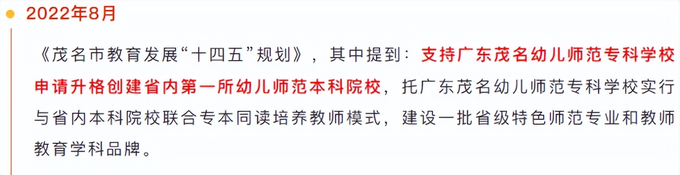 学校是广东省人民政府批准、教育部备案的全日制公办普通高等专科院校,是广东省第一所幼教师范高等院校。学校2024年参加广东省高等职业教育“创新强校工程”考核,排名B类学校第19名,居全省5所幼专首位、茂名4所大专类高校首位。