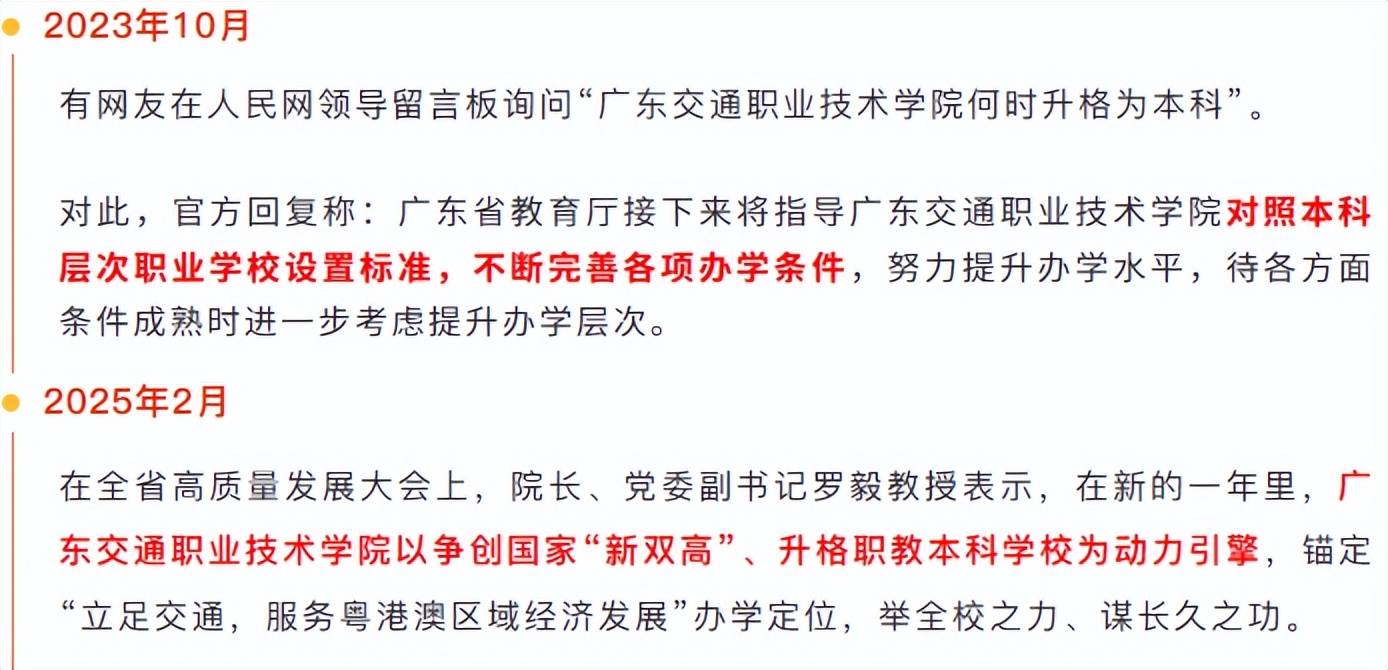 广东交通职业技术学院是国家优质专科高等职业院校、广东省省域高水平高职院校建设计划立项建设单位、国家交通运输部交通职业教育交通强国专项试点院校。